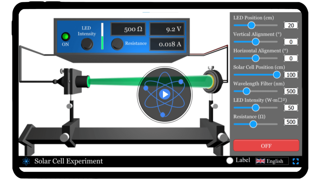 Explore the working of solar cells and experiment with varying light intensities, wavelengths, and material properties to study photovoltaic conversion using our interactive simulator.