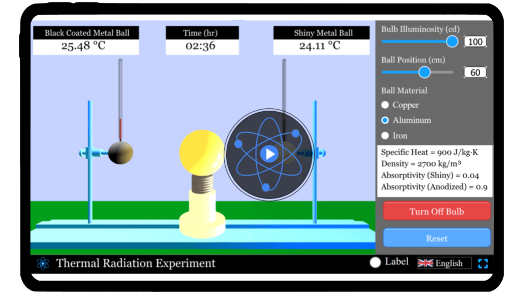Physics surrounds us, shaping how energy moves through the world around us, often in ways we don’t notice. Have you ever wondered how heat radiates from a hot surface or how different materials absorb and emit energy? This transfer of energy, governed by the principles of thermal radiation, can be explored and visualized with our interactive simulator. Adjust surface temperatures, materials, and emissivity to observe how radiative heat spreads, and uncover the science behind energy emission and absorption. Start your journey into the fascinating world of thermal radiation — experiment and visualize heat transfer today!